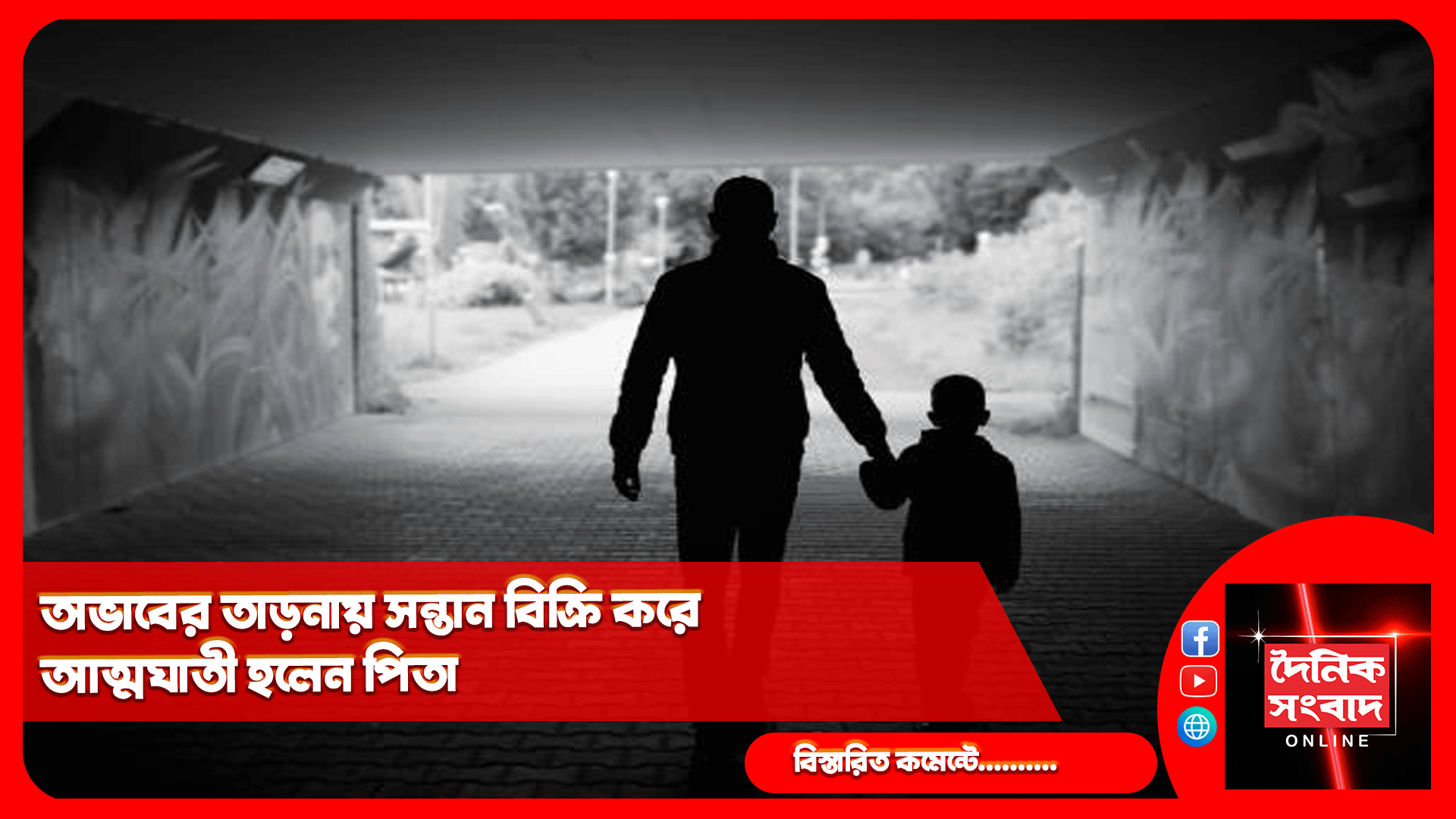 দৈনিক সংবাদ অনলাইন ডেস্ক, ১৩ ফেব্রুয়ারী: অভাবের তাড়নায় শিশু বিক্রি করে আত্মহত্যা পিতার। ঘটনা যুবরাজনগর বিধানসভার চুপিরবন্দ লালছড়া এলাকায়। ঘটনা জানাজানি হতেই শুক্রবার দিনভর গোটা উত্তর জেলায় ছড়িয়ে পড়ে চাঞ্চল্য। এদিকে, ঘটনায় মুখ খুলতে নারাজ ধর্মনগর আরক্ষা প্রশাসন। প্রসঙ্গত, যুবরাজনগর বিধানসভার চুপিরবন্দ লালছড়া এলাকার তিন নং ওয়ার্ডের বাসিন্দা রবীন্দ্র দাস (পঁয়তাল্লিশ) পেশায় দিনমজুর। দুই সন্তান স্ত্রী ও বৃদ্ধ মাকে নিয়েই তার পরিবার। মায়ের বয়স প্রায় ৯৬ বছর। গোটা পরিবারের একমাত্র উপার্যনকারী ব্যক্তি ছিলেন রবীন্দ্র দাস। তার সিমিত আয়ের উপর নির্ভর করে খুব কষ্টেই চলত সংসার। এরই মধ্যে শুক্রবার সকালে রবীন্দ্র দাসের স্ত্রী বাড়ির ধারে একটি গাছে ঝুলন্ত অবস্থায় স্বামীর মৃতদেহ দেখতে পান। সঙ্গে সঙ্গে বিষয়টি জানানো হয় ধর্মনগর থানায়। দীর্ঘ বহু সময় পর ঘটনাস্থলে যান পুলিশ। শুরু করেন ঘটনার তদন্ত। এদিকে, মৃতের স্ত্রীর সাথে কথা বললে তিনি প্রথমে বিষয়টি অস্বীকার করলেও পরবর্তীতে জানান, গত সোমবার আসামের মাকুন্দা মিশনারী হাসপাতালে তার পরিবারের এক কন্যা সন্তানের জন্ম হয়। জন্মের পরই সন্তানটিকে শিলচরের জনৈক ব্যক্তির নিকট বিক্রি করে দেন তার স্বামী রবীন্দ্র দাস। বিষয়টি স্ত্রী জানতে পারলে স্বামী স্ত্রীর মধ্যে শুরু হয় বিবাদ। সন্তানটিকে বিক্রি করা হয়েছে বলে জানালেও টাকার পরিমাণ তিনি বলতে পারেননি। পাশাপাশি যে ব্যক্তির কাছে সন্তান বিক্রি করা হয়েছে তাকেও তিনি চিনেন না বলে জানিয়েছেন। বৃহস্পতিবার রবীন্দ্র দাস শিলচর থেকে ফিরে আসেন বলে জানান তার স্ত্রী। এরপর নিজেদের মধ্যে কিছুটা বাকবিতন্ডার পর রাত তিনটা নাগাদ রবীন্দ্র দাস ঘর থেকে বেরিয়ে আর ফিরে আসেননি। সকাল হতেই শুরু হয় খোঁজাখুঁজি। অবশেষে বাড়ির ধারে একটি গাছে স্বামীর দেহ ঝুলে থাকতে দেখেন তিনি।
