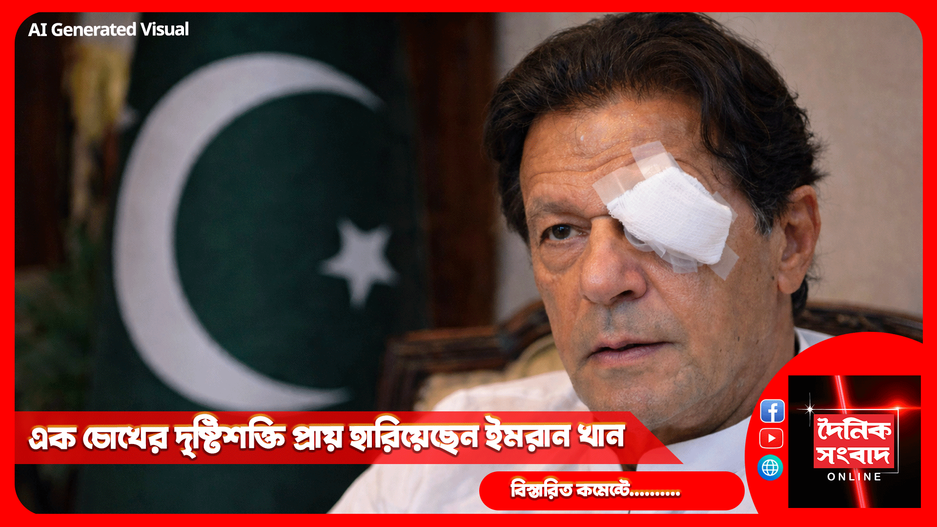 তিনি বলেন, সাক্ষাতের পুরো সময়ে ইমরানের চোখ জলে ভরা ছিল এবং তিনি বারবার টিস্যু দিয়ে চোখ মুছছিলেন, যা শারীরিক অস্বস্তির প্রতিফলন। এদিকে ইমরানের দল পিটিআই বলেছে, তারা বিশ্বাসযোগ্য সূত্রে জানতে পেরেছেন, ইমরান খানের ডান চোখে সেন্ট্রাল রেটিনাল ভেইন অঙ্কুশন (সিআভিও) ধরা পড়েছে, যার ফলে সঠিক চিকিৎসা না পেলে ইমরান খান চিরতরে দৃষ্টিশক্তি হারাতে পারেন। প্রসঙ্গত, একাধিক মামলায় অভিযুক্ত পিটিআইয়ের প্রধান ইমরান খান ২০২৩ সালের আগষ্ট থেকে কারাগারে আছেন। গত ডিসেম্বর জাতীয় নিরাপত্তার জন্য হুমকি হিসাবে উল্লেখ করে ইমরান খানের সঙ্গে কারাগারে সাক্ষাৎ সম্পূর্ণ নিষিদ্ধ করে পাকিস্তান সরকার।