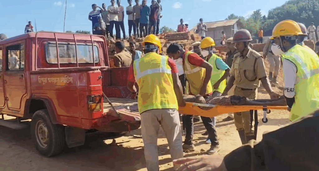 দৈনিক অনলাইন, ১৭ ডিসেম্বর।। ইট ভাটার চুল্লি ভেঙে ইটের নীচে চাপা পড়ে মর্মান্তিক মৃত্যু হলো চার শ্রমিকের। গুরতর আহত হয়েছে আরও চার জন শ্রমিক। এই মর্মান্তিক ঘটনাটি ঘটে বুধবার কমলপুর মহকুমার অপরেস্কর এ বি সি ইট ভাট্টায়। এদিন ইট ভাটায় পূজো দিয়ে আগুন দেওয়ার দিন ছিল। সেই মতো ব্রম্মা পুজো সহ অনুসঙ্গিক পুজো শেষ করে চুল্লিতে আগুন দিতেই চুল্লি ভেঙে পড়ে। আর এই চুল্লির নিচে চাপা পড়ে চারজন শ্রমিকের মৃত্যু হয় ও চারজন গুরুতর আহত হয়। ঘটনার পর ড্রজার দিয়ে ইটের নিচ থেকে তাদের বের করা হয়। নিহত ও আহতদের অগ্নি নির্বাপক গাড়ি ও অ্যাম্বুলেন্স দিয়ে হাসপাতালে নিয়ে যাওয়া হয়। হাসপাতালে যাওয়ার পথে এক শ্রমিকের মৃত্যু হয়। নিহত তিনজন শ্রমিক ওই এলাকারি বাসিন্দা। একজন ঝাড়খন্ডের শ্রমিক।