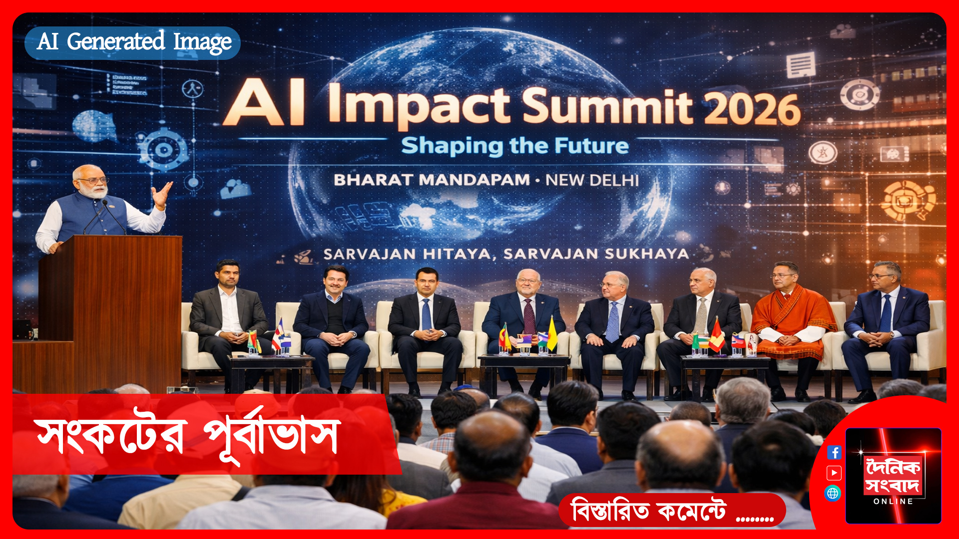 সম্পাদকীয়, ১৬ ফেব্রুয়ারী: নয়াদিল্লীর ভারত মণ্ডপমে শুরু হওয়া এআই ইমপ্যাক্ট সামিট ২০২৬ নয়াদি একদিকে প্রযুক্তিগত অগ্রগতির উৎসব, অন্যদিকে ভবিষ্যৎ সমাজব্যবস্থার এক গভীর প্রশ্নচিহ্ন। প্রধানমন্ত্রী নরেন্দ্র মোদি যখন ‘সর্বজন হিতায়, সর্বজন সুখায়’ মন্ত্র উচ্চারণ করে কৃত্রিম বুদ্ধিমত্তাকে মানুষকেন্দ্রিক উন্নয়নের হাতিয়ার হিসেবে তুলে ধরছেন, তখন একই সময়ে বিশ্বমঞ্চে ঘুরে বেড়াচ্ছে এক ভিন্ন আশঙ্কা-এ আই কি মানবসভ্যতার কর্মসংস্থান কাঠামোকেই ভেভে দেবে?