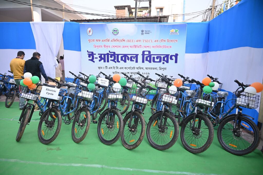 অনলাইন প্রতিনিধি :-ত্রিপুরা রাজ্য বিদ্যুৎ নিগম লিমিটেড গ্রাহকদের নিরবচ্ছিন্ন বিদ্যুৎ পরিষেবা প্রদানে নিরলসভাবে কাজ করছে এবং এই লক্ষ্যেই দেশ সেরা রাজ্য হিসাবে নিজেদের প্রতিষ্ঠিত করতে চায়। বৃহস্পতিবার আগরতলায় টিএসইসিএল কর্পোরেট অফিসে ব্যুরো অব এনার্জি এফিসিয়েন্সি (বিইই) এবং ত্রিপুরা রাজ্য বিদ্যুৎ নিগমের যৌথ উদ্যোগে আয়োজিত এক অনুষ্ঠানে ৩০ জন আশা ফ্যাসিলিটেটরের মধ্যে ই-বাইসাইকেল বিতরণকালে মন্ত্রী এই