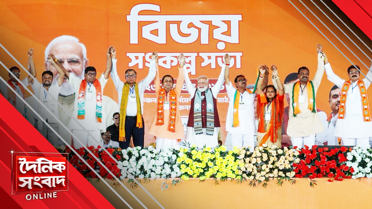 কৃষ্ণনগরে দাঁড়িয়ে মতুয়া আবেগ ছুঁতেও মরিয়া চেষ্টা করেন মোদি। তিনি বলেন, ‘মতুয়াদের তৃণমূলের ভয় পাওয়ার প্রয়োজন নেই। আপনাদের কেউ হাত লাগাতে পারবে না।’ প্রধানমন্ত্রী বলেন, ‘১৫ বছর আগে বামেদের বিরুদ্ধে জনতা কেবল ফুঁ দিয়েছিল। কিন্তু এ বার তৃণমূলের জঙ্গলরাজের বিরুদ্ধে জনতা শঙ্খে ফুঁ দিচ্ছে। আমরা ভোটে লড়ছি না। এ বারের ভোট জনতা লড়ছে। সরকারি কর্মচারীরা ভয় থেকে বেরিয়ে এসে ভোট দিচ্ছেন। চিকিৎসকেরা ভাল ব্যবস্থার জন্য ভোট দিচ্ছেন। আইনজীবীরা ভোট দিচ্ছেন ন্যায় প্রতিষ্ঠার জন্য। শিক্ষক ভয়মুক্ত শিক্ষাপ্রতিষ্ঠানের জন্য ভোট দিচ্ছেন। জনতার সেবা করার জন্য ভোট দিচ্ছে পুলিশ।’