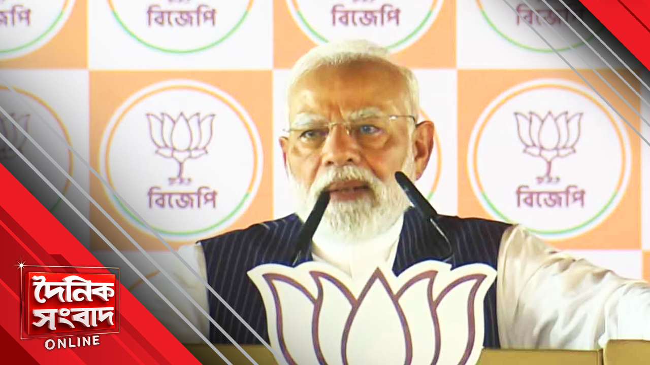 বাংলায় পরিবর্তন কেন জরুরি তার ব্যখ্যা দিতে গিয়ে প্রধানমন্ত্রী বলেন, ‘প্রচারের সময় বাংলার বিকাশ নিয়ে বিজেপির পরিকল্পনা তুলে ধরেছি। তৃণমূলের নেতারা একবারও মা-মাটি-মানুষের নাম নেয়নি এই ভোটে। যে মন্ত্র নিয়ে তারা বাংলায় সরকার গড়েছিল, তা ওরা ভুলে গিয়েছে। ১৫ বছর ওদের সুযোগ দিয়েছেন, মায়ের জন্য, নারী সুরক্ষার জন্য কিছু করেনি। মাটি, কৃষক, যুবক, মানুষের জন্য কিছু করেনি। কিছু বলার নেই বলে একটাই ফর্মুলা নিয়েছে, গালি দাও, হুমকি দাও, মিথ্যা বলো। মোদীকে, সেনাকে গালি দিয়েছে। বাংলার লোকজনকে হুমকি দিয়েছে।’ তৃণমূলের আমলে বাংলায় জঙ্গলরাজ তৈরি হয়েছে বলে মন্তব্য করেছেন মোদি। তার মন্তব্য, ‘আপনাদের রোজগার বন্ধ হচ্ছে। গুন্ডাদের রোজগারের জায়গা, বোমার কারখানা ফুলেফেঁপে উঠছে। তৃণমূলের সিন্ডিকেটের দোকান বাড়ছে। এটাই ওদের জঙ্গলরাজ। নিজের বাড়ি, দোকান নিয়ে সিদ্ধান্ত নিতে হলে ওদের সিন্ডিকেটকে জিজ্ঞেস করতে হয়। তৃণমূলের সিন্ডিকেটকে ভাগাতে হবে, ওদের হারাতে হবে। তৃণমূলকে সরাবেন তো? আজ ভারতের জন্য গোটা দুনিয়া উৎসাহিত। আমি আশ্বাস দিচ্ছি, কলকাতা এবং আশপাশের এসব এলাকা মেক ইন্ডিয়ার বড় হাব হবে। বিজেপি সরকার কারখানা নিয়ে সব সমস্যার সমাধান করবে। পরিকল্পনা করব। বিজেপির মুখ্যমন্ত্রী করুন। পিএম, সিএম এক সঙ্গে উন্নয়ন করবে। পিএম স্বনিধি যোজন, ফুটপাথে যারা কাজ করেন, তারাও ব্যাঙ্ক থেকে সাহায্য পাবেন। এগুলো মোদীর গ্যারান্টি। এখানে বিজেপির মুখ্যমন্ত্রী করুন, ডাবল ইঞ্জিনের লাভ পাবেন।’ বাংলায় বিজেপি এলে নতুন করে কর্মসংস্থানের সুযোগ তৈরি হবে বলে প্রতিশ্রুতি দিয়েছেন মোদি। মহিলাদের উদ্দেশ্যে মোদি বলেন, ‘এই মাটি রানি রাসমণির সাহসের গাঁথায় সমৃদ্ধ। সেখানকার মেয়েদের ভয় দেখাচ্ছে তৃণমূল। এই রাজ্যকে অসুরক্ষিত করেছে মহিলাদের জন্য। ভোট দিতে যাওয়ার সময়ে গুন্ডাদের কথা মনে করবেন।’ বাংলায় বিজেপির সরকার এলে সেই সরকারের নতুন মন্ত্র কী হবে তাও উল্লেখ করেছেন প্রধানমন্ত্রী। তিনি বলেন, ‘বাংলায় যে বিজেপি সরকার আসছে, তারা শ্যামাপ্রসাদের সঙ্কল্প পূরণ করবে। ভারতের প্রগতি, সংস্কৃতি, স্বাধীনতায় বাংলার সন্তানদের ভূমিকা ছিল বড়। কিছু দূরে ঋষি বঙ্কিমচন্দ্র চট্টোপাধ্যায়ের বাড়ি। বন্দে মাতরমের দেড়শো বছর পূর্তিতে বাংলাও ঐতিহাসিক পরিবর্তন করতে চলেছে। বন্দে মাতরম দাসত্ব থেকে মুক্তির মন্ত্র ছিল। এ বার বাংলার নব নির্মাণের মন্ত্র তৈরি করতে হবে। সুজলং, সুফলংকে নীতি করব, শস্য শ্যামলং -কে রোজগারের পথ করব। মলয়জ শীতলং-কে সুখ সমৃদ্ধির পথ করব। দুর্গার শক্তিকে সুরক্ষার গ্যারান্টি করব।’