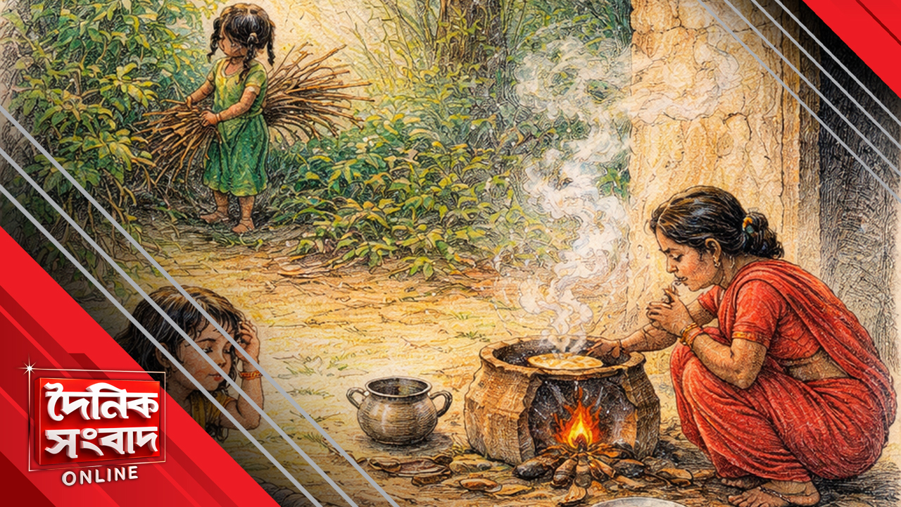 ঘুম থেকে উঠে সকাল সকাল মা উনুন ধরায়।