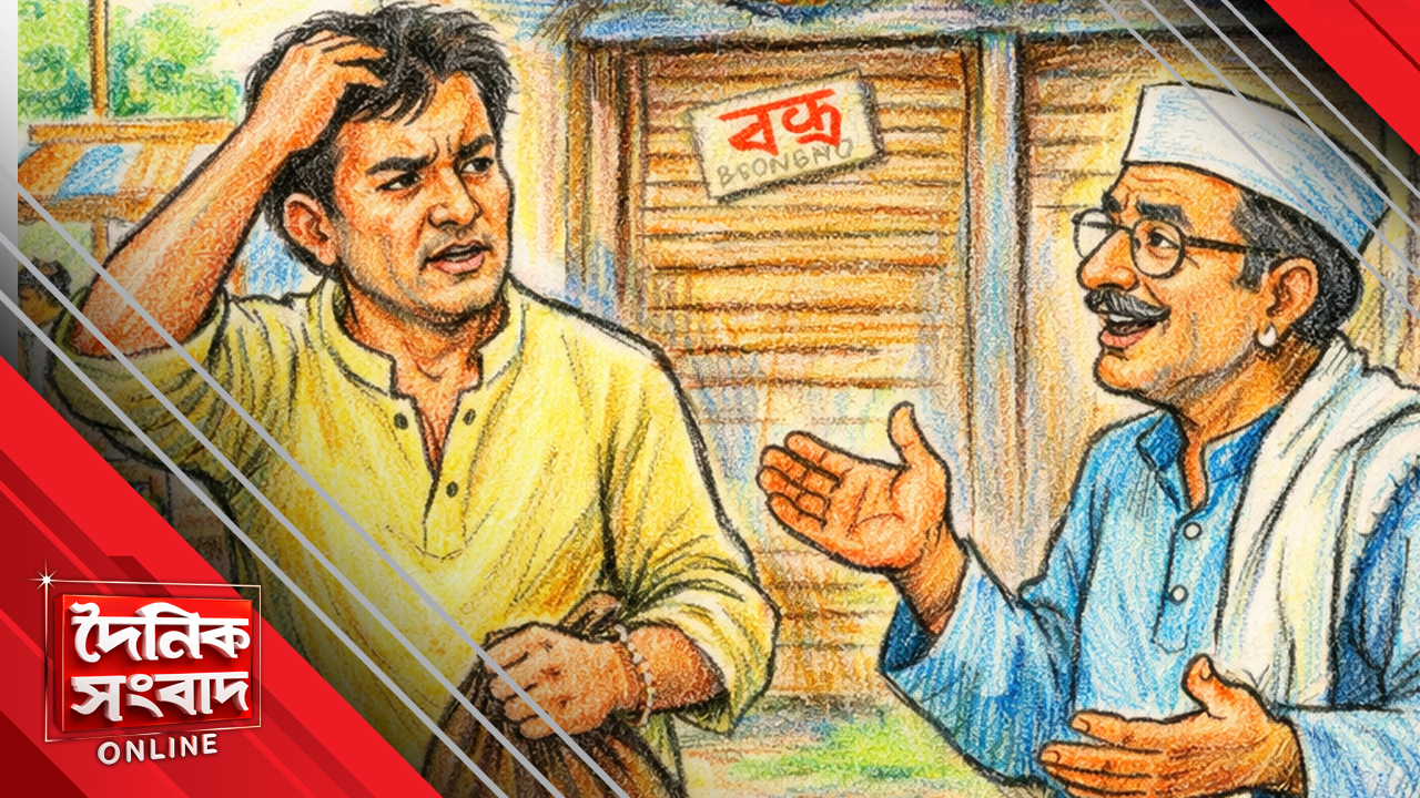 –আরে মশাই, সেটাই তো বলছিলাম আপনাকে। ব্যাগ হাতে যে চলেছেন, আজ দুর্গা চৌমুহনী বাজার বন্ধ।